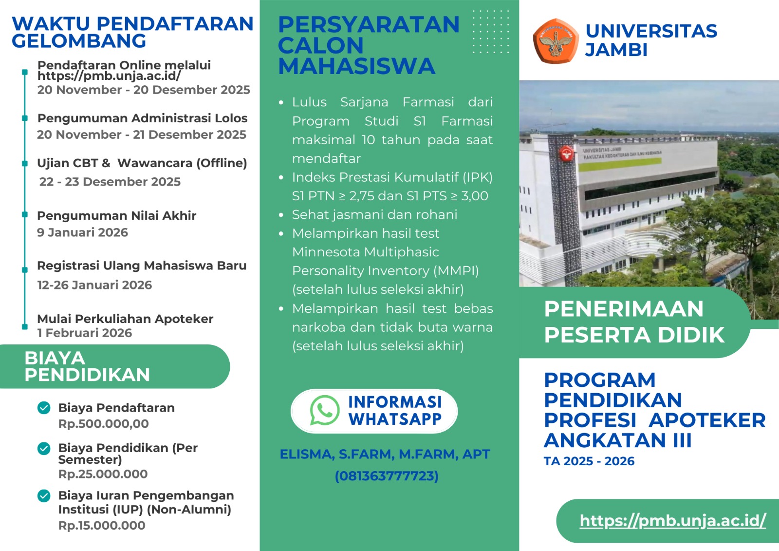 Penerimaan Mahasiswa Baru Seleksi Mandiri Program Studi Profesi Apoteker Universitas Jambi Angkatan Ke 3 Tahun Akademik 2025-2026